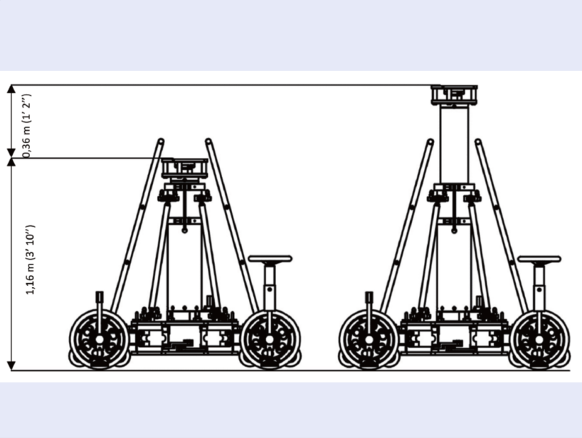 Scorpio 23'Lは、アーム付きのドリーベースを持ち、標準的な62cmのドリートラックや40cmのレールに合わせて幅を変えられます。また、標準的なオフィスドア(80cm)を通ることができ、非常に小型でコンパクトで必要な場所に配置できます。